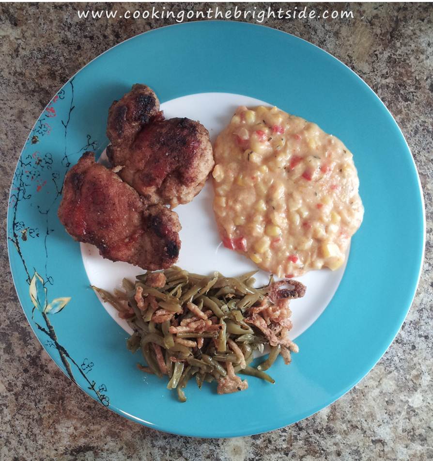 Well, a few weeks ago I came across a recipe for creamed corn that sounded delicious – and actually not loaded with fat. Now I am picky about my sides – I can justify splurging a little on a main course, but I have to really be impressed by a side dish.